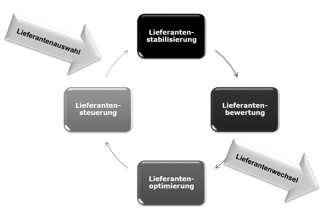 Dies sind die Ziele des Lieferantenmanagements. Schlanke Produktion, steigende Materialkosten, sinkende Lagerhaltung und das Übertragen von Entwicklungskompetenzen machen es nötig, geeignete Lieferanten auszuwählen, ihre Leistung ständig zu beobachten und zu verbessern.